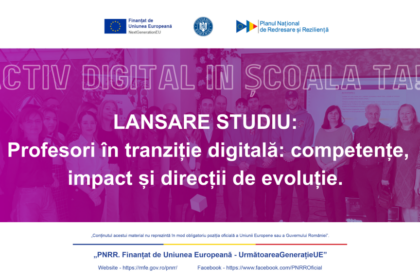 invatamant Asociația GO-AHEAD anunță lansarea studiului „Profesori în tranziție digitală: competențe, impact și direcții de evoluție”, realizat în cadrul proiectului…