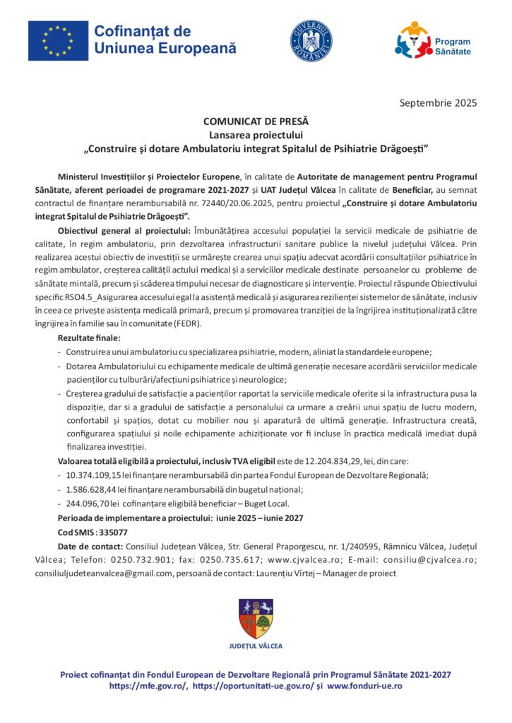 Construire și dotare Ambulatoriu integrat Spitalul de Psihiatrie Drăgoești