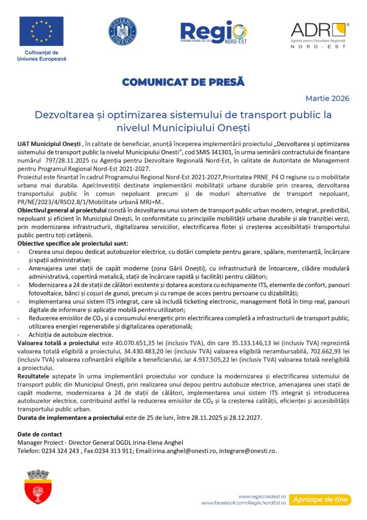 Dezvoltarea și optimizarea sistemului de transport public la nivelul Municipiului Onești